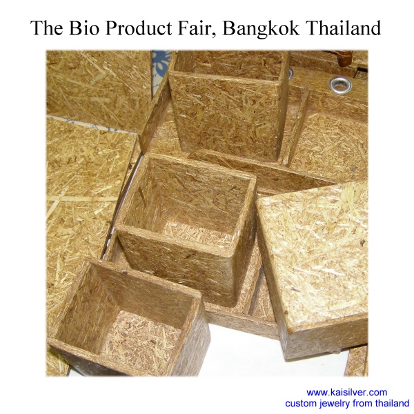 Not everything at the bio product show was about eating, other interesting products made from agricultural or bio based raw material were also on display. An interesting development related to dried rice stalk was a true winner. With large scale rice farming carried out in Thailand, dried rice stalk that remains after the rice is harvested is readily and abundantly available. A bio product on display used dry rice stalk and organic glues to produce, hard sheets. This material could be cut and assembled into small boxes. You could even make pen stands or watch boxes from this material. There is no doubt that innovative products like this, will prove very beneficial to the Thai economy. Dried rice stalk costs almost nothing but the added value that results from making of the boxes is tremendous.
