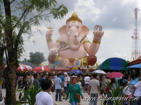 A huge 3 to 4 storey high statue of a famous Hindu god, photorgraphed on location in Thailand. Notice how the clouds in the background help to keep the entire top edge of the statue clear and distinct. A blank sky with heavy sunlight would have not given such an impressive atmosphere to the image.